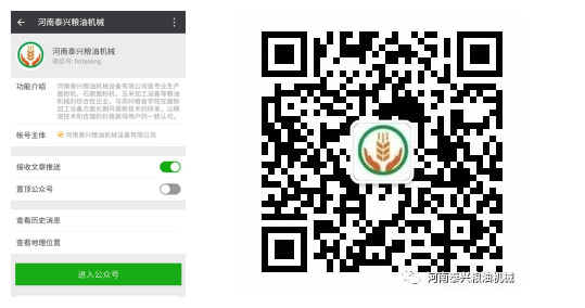 河南泰興糧機微信公眾賬號成功上線
